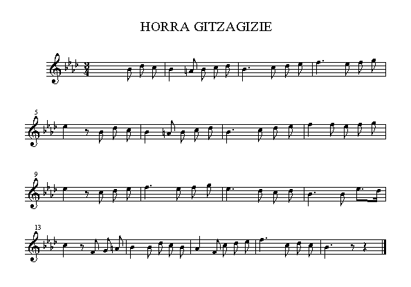 1. Horra gitzagizie egün Ziberuko bost danzari.Gogo hunez jarraiki gira goiz izarraren galtuari.
