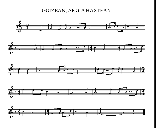 1.Goizean argi hastean, ene leiho hegian,txori bat pausatzen da eta goratik hasten kantan.
