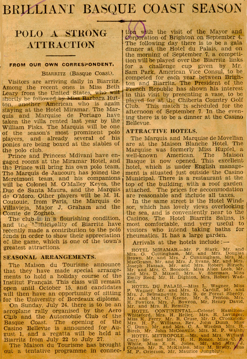- Brilliant Basque Coast Season. Polo a strong attraction.