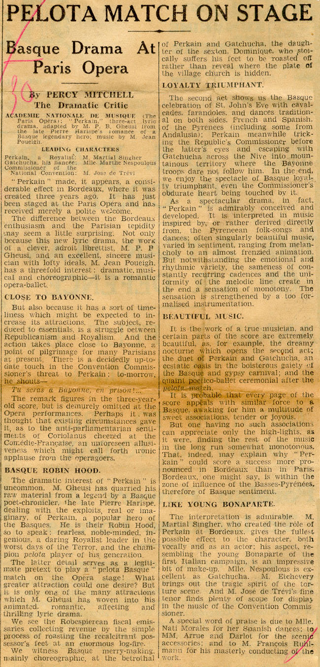 - Pelota Match on Stage. Basque Drama at Paris Opera.