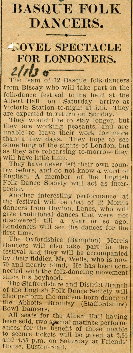 - Sobre actuación de un grupo vizcaino en el Albert Hall. Breve.