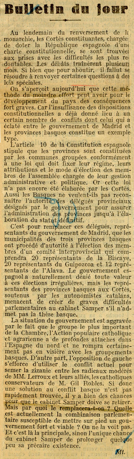 - Bulletin du jour.