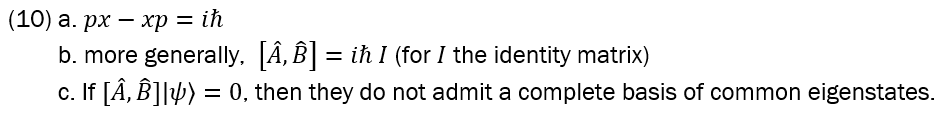 If ∣ψ⟩ could exist as a joint eigenstate as in (11a) below, then (11b) should obtain; but applying the commutator to ∣ψ⟩ yields (11c), which makes sense only under conditions as in (11d). Now, the zero-state vector is not a sensible physical condition; nor is it to equate ℏ to zero, as we can positively measure that constant – in fact, were Planck’s constant zero, the result would be a classical universe, with a commutative algebra for all observables.