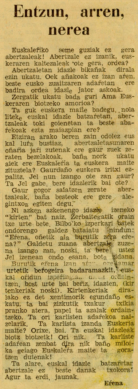Entzun, arren, nerea.