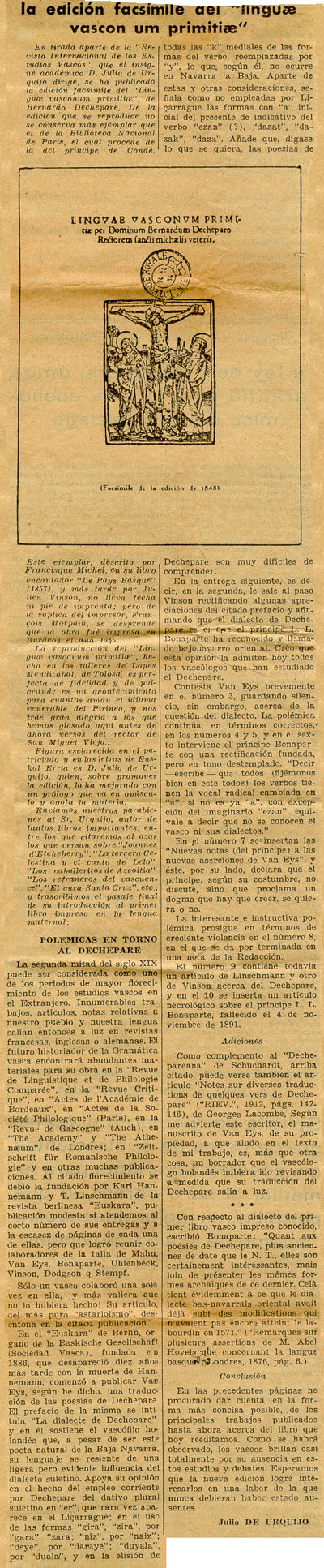 - La edición facsimile del "Linguae Vasconum Primitiae".