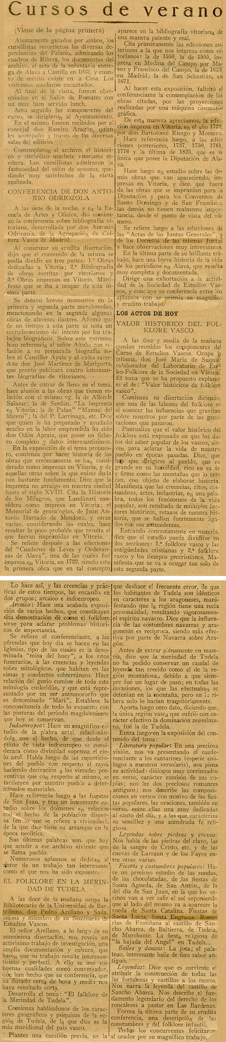 - Reseña conferencias de Odriozola sobre historiografía vitoriana y de Arellano sobre kolklore tudelano.