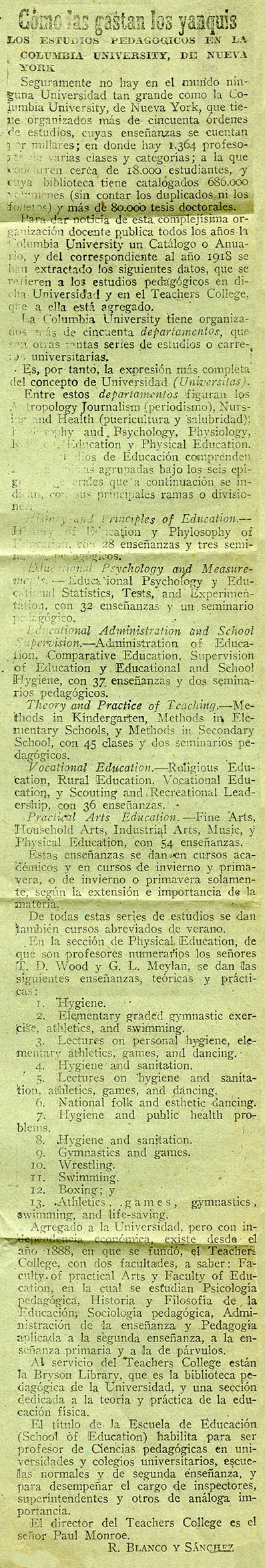 - Cómo las gastan los yanquis. Los estudios pedagógicos en la Columbia University, de Nueva York.