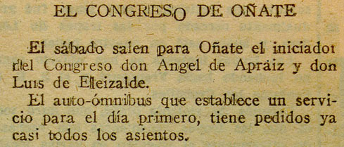 Se anuncia traslado a Oñati de Eleizalde y Apraiz.