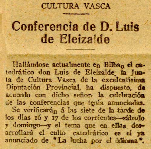 - Se anuncia en Bilbo sobre "La lucha por el idioma".