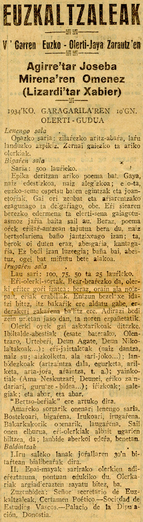 - Convocatoria del V Día de la Poesía Vasca [10
