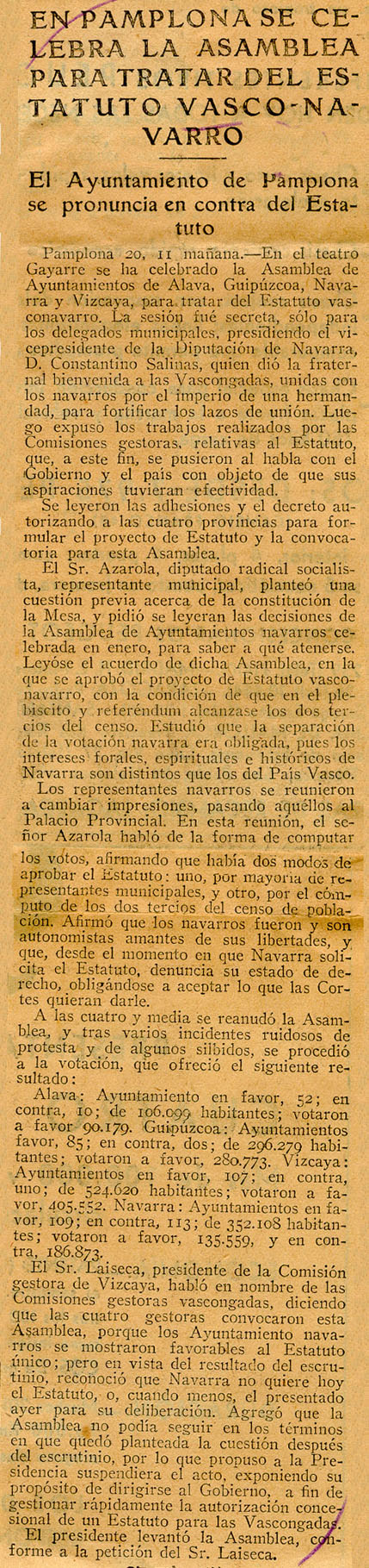 - En Pamplona se celebra la Asamblea para tratar del estatuto Vasco-navarro.
