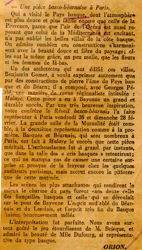 - Une pièce basque-béarnaise à Paris.