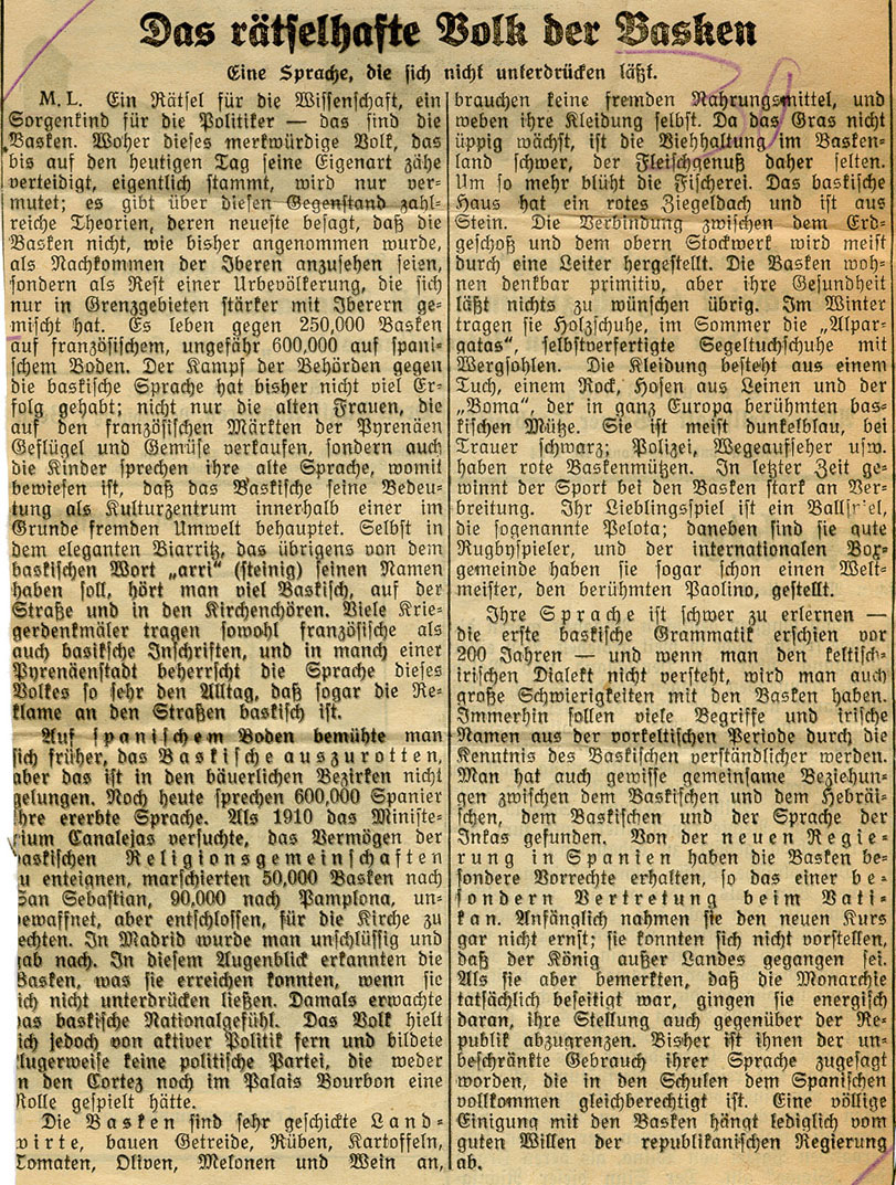 - Das rätselhaste Volk der Basken.