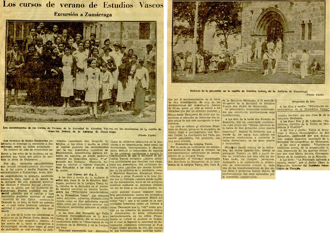 Los Cursos de Verano de Estudios Vascos. Excursión a Zumárraga.