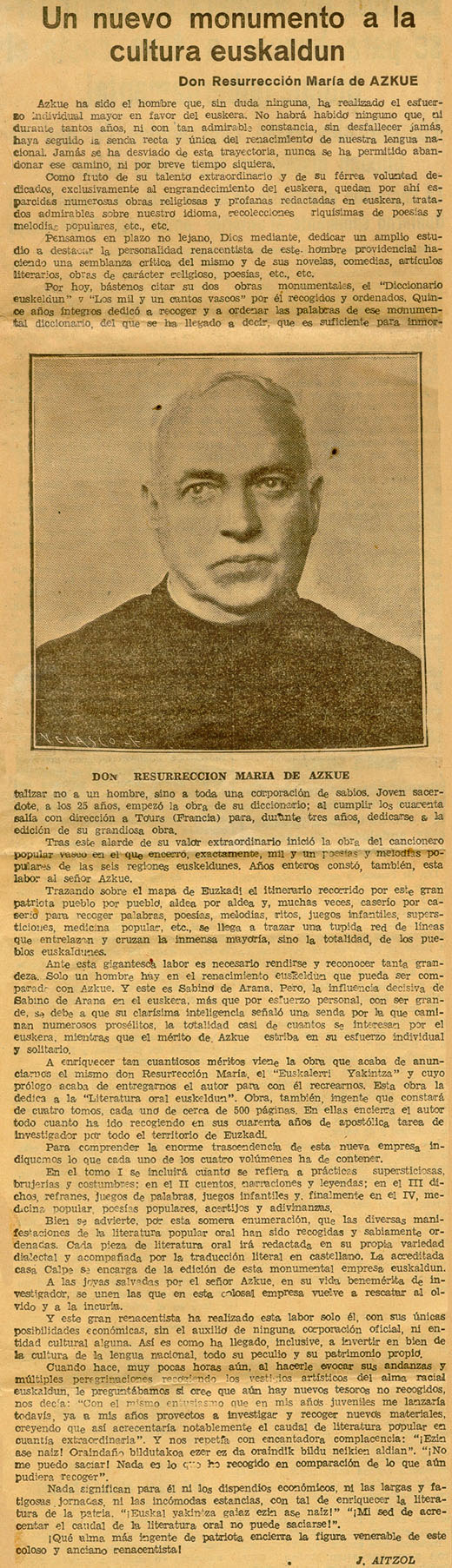 - Letras y arte vasco. Un nuevo monumento a la cultura euskaldun.