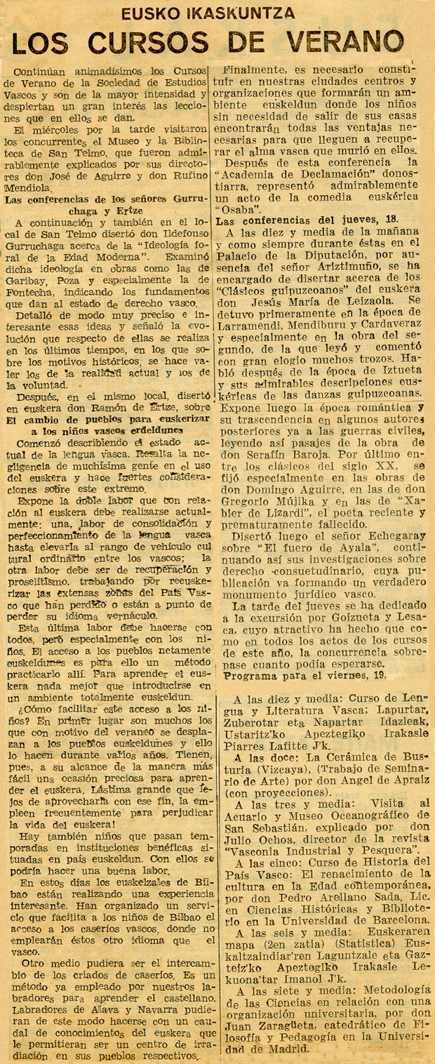 - Eusko Ikaskuntza. Los Cursos de Verano
