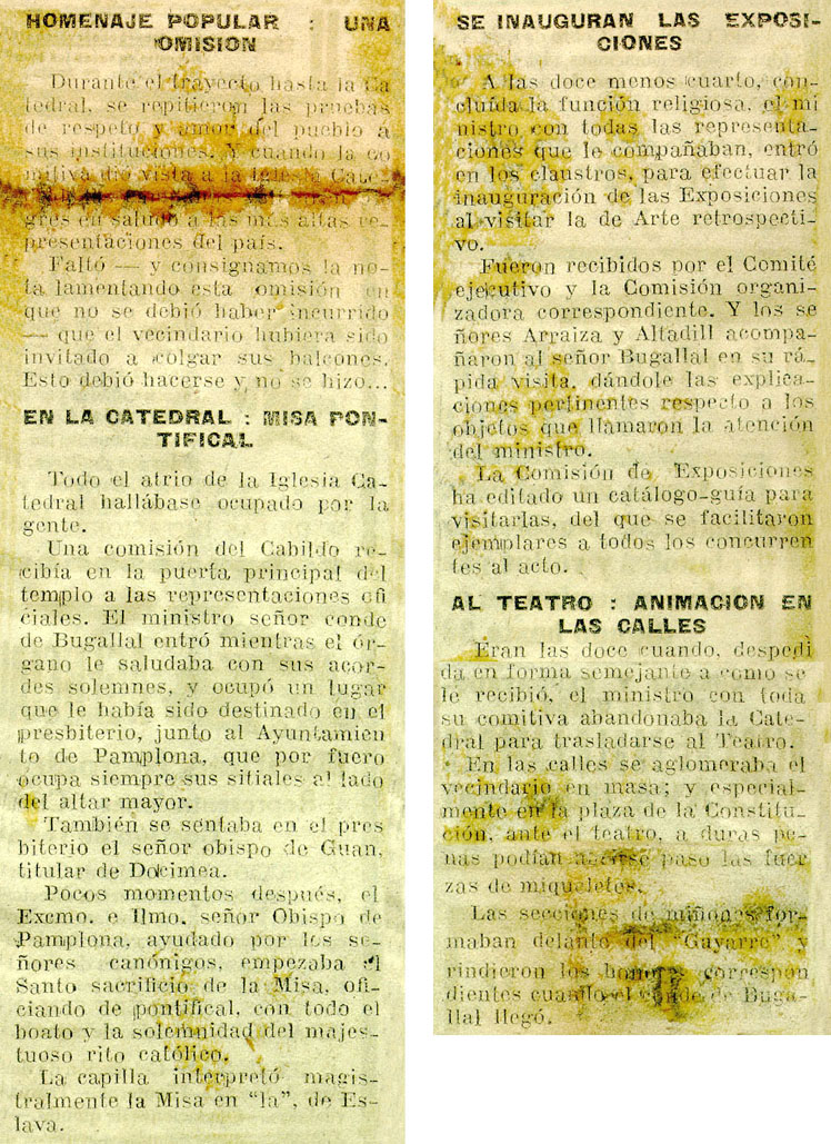 - Actos inaugurales. Misa en la catedral. Inauguración de las exposiciones.