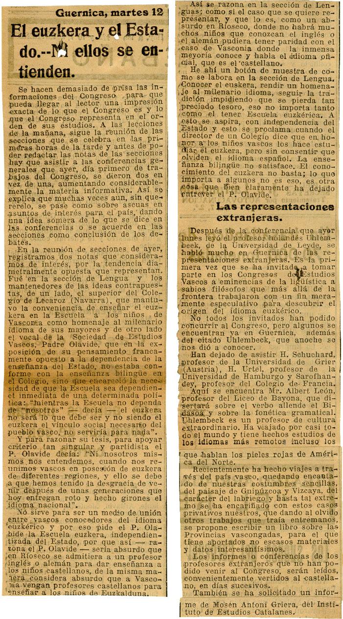 - Guernica, martes 13. El euzkera y el Estado. Ni ellos se entienden.