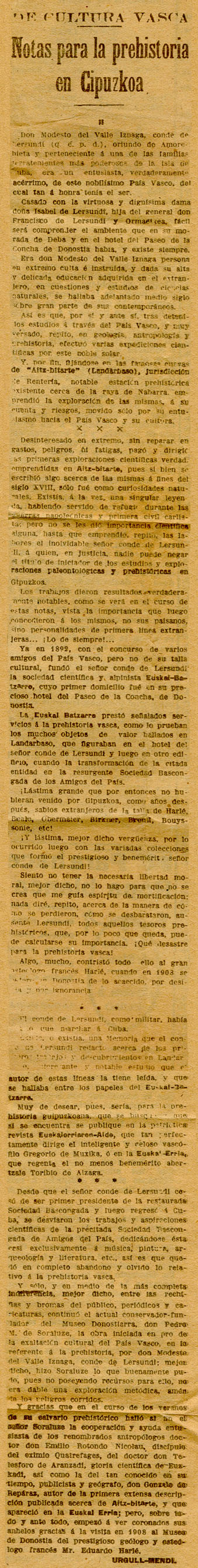 - De Cultura Vasca. Notas para la prehistoria en Gipuzkoa.
