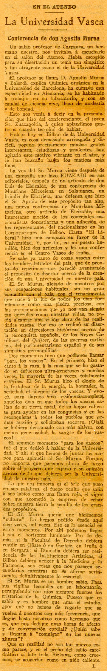 En el Ateneo. La Universidad Vasca.