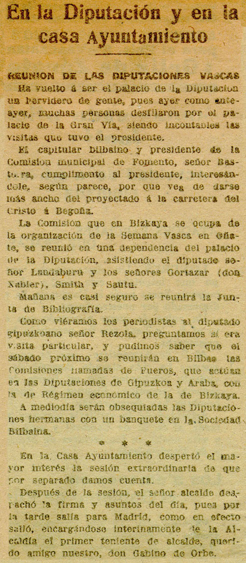 En la Diputación y en la casa Ayuntamiento. Reunión de las Diputaciones vascas.