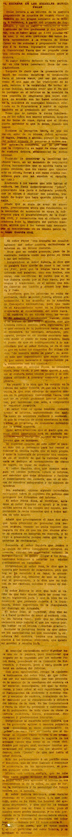 - Sesión municipal. Comentarios sobre el voto particular del concejal maurista Zubiría contrario a la enseñanza y difusión del euskera.
