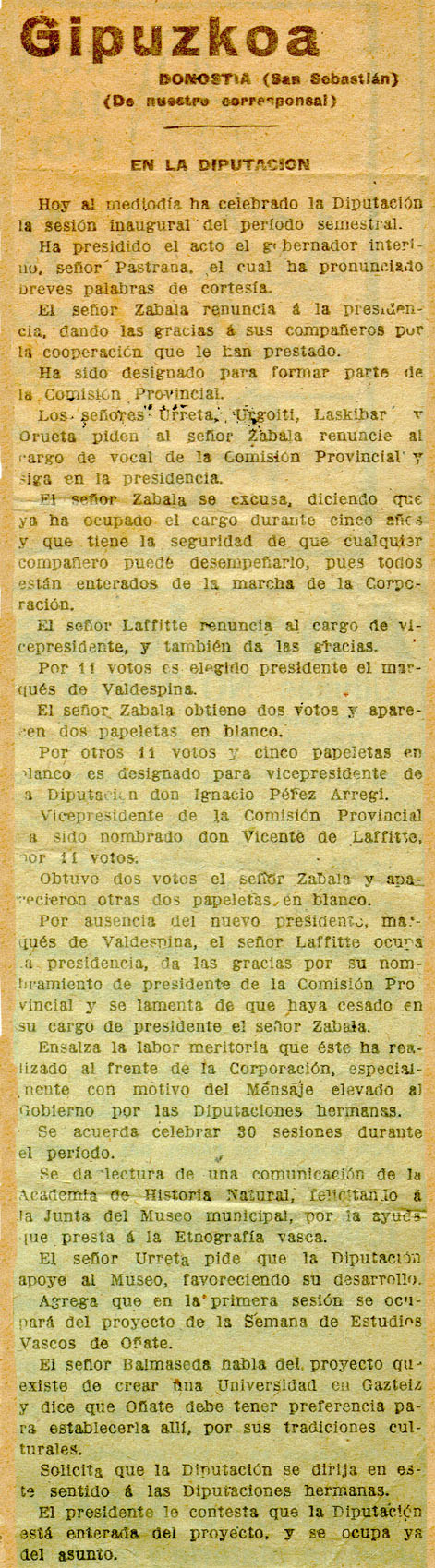 - Reseña sesión provincial. Se citan, entre otros proyectos, la Semana de Estudios Vascos de Oñati y la Universidad.