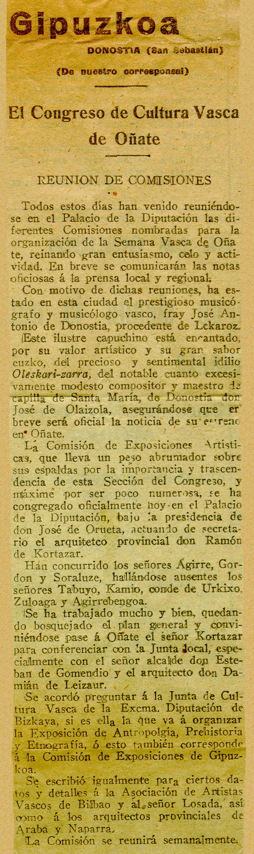 - Gipuzkoa. El Congreso de Cultura vasca de Oñate.