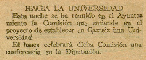 - Se da cuenta de la reunión en el Ayuntamiento de la Comisión que se ocupa del proyecto de Universidad en Gasteiz.