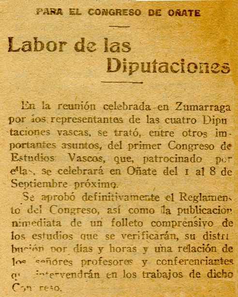 - Breve nota informando de la reunión preparatoria del Congreso y aprobación del Reglamento del mismo tenida en Zumárraga.