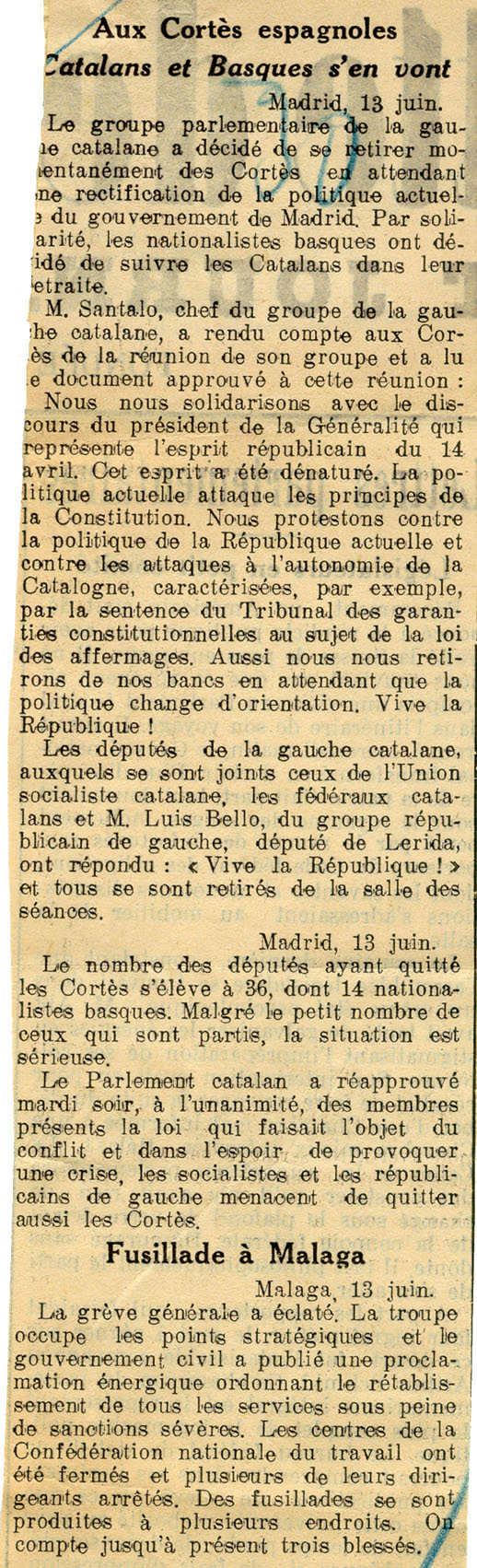 - Aux Cortès Espagnoles. Catalans and Basques s´en vont.