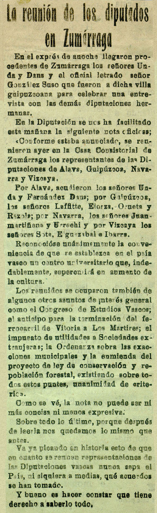- Reseña, relación de asistentes y principales puntos abordados en la reunión para tratar de la Universidad Vasca.