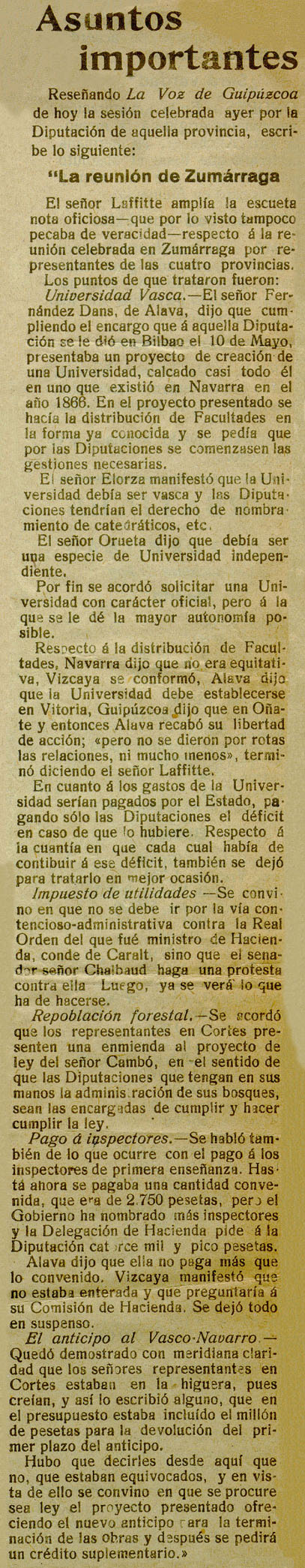 - Reseña de la reunión tenida sobre la Universidad Vasca.