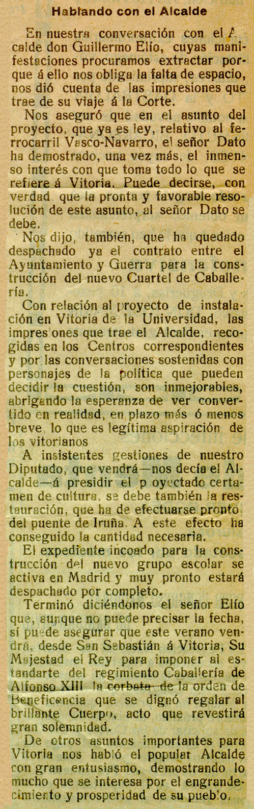 - Declaraciones de Elío sobre el proyecto de Universidad Vasca.