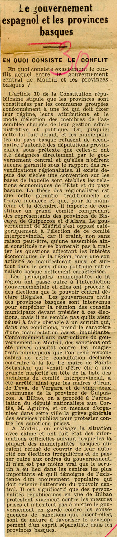 Le gouvernement espagnol et les provinces basques.En quoi consiste le conflit.