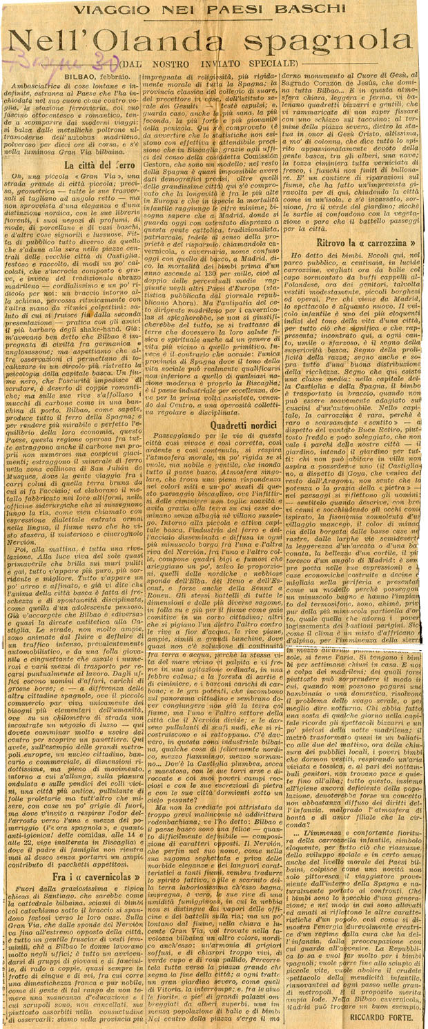 - Recorte de agencia [Argus Suisse et International de la Presse, S.A./23, rue du Rhône-Genève] [Nota manuscrita: "y en Nazione de Firenze en 1.3.32].