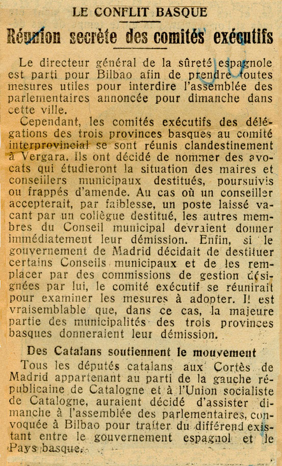 Le conflit basque. Réunion secrète des comités exécutifs.
