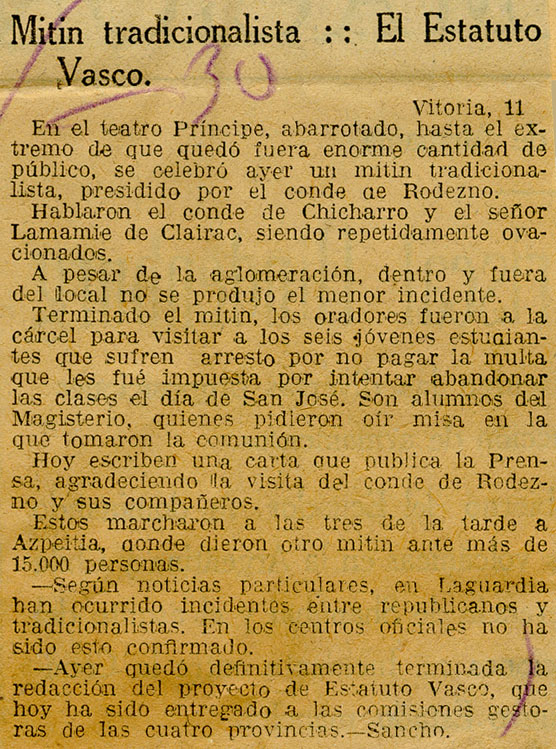 - Recorte de agencia [Argus Suisse et International de la Presse, S.A./23, rue du Rhône-Genève]
