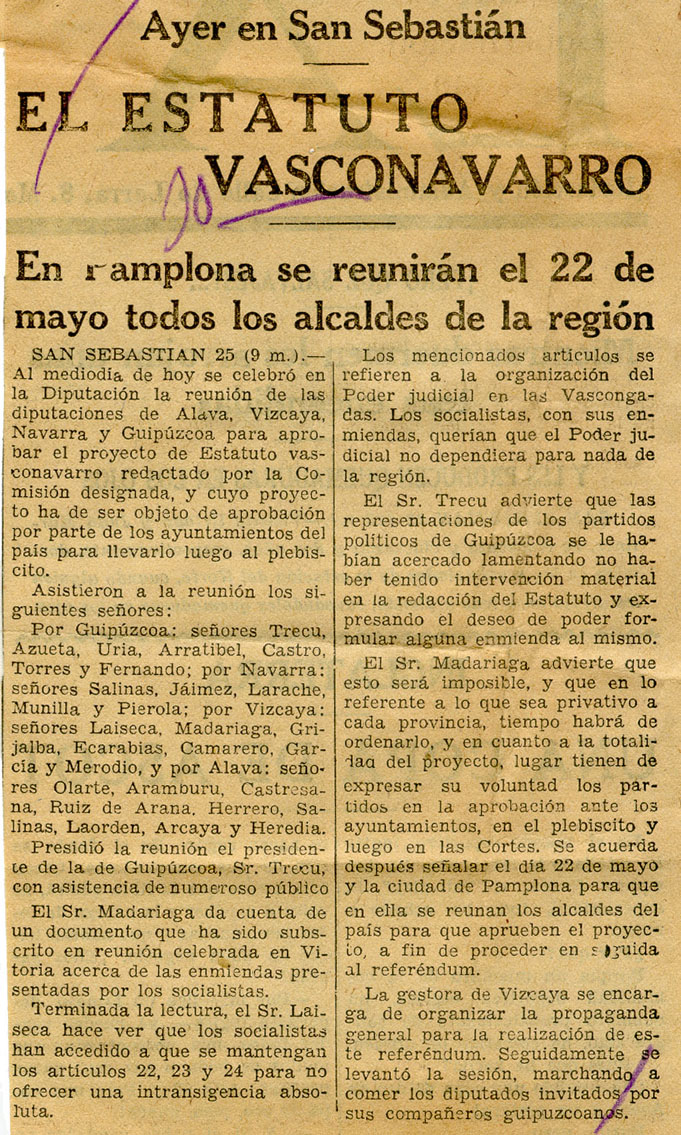 - Ayer en San Sebastián. El estatuto Vasconavarro.