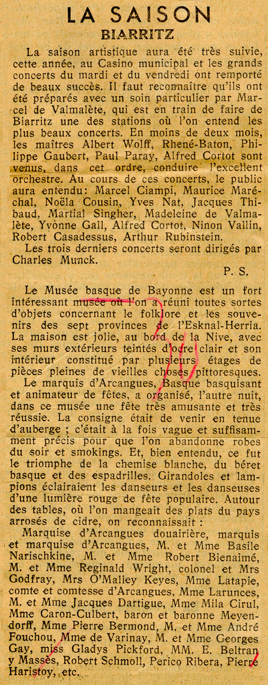 - La saison. Biarritz.