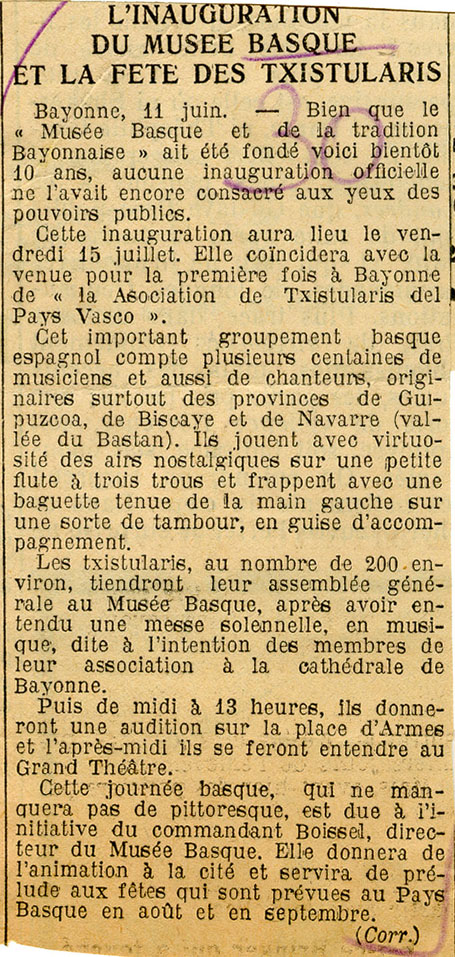 - L´inauguration du Musée Basque et la fête des txistularis.