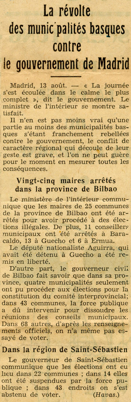 - La révoltes des municipalités basques contre le gouvernement de Madrid.
