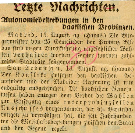 - Recorte de agencia [Argus Suisse et International de la Presse, S.A./23, rue du Rhône-Genève]