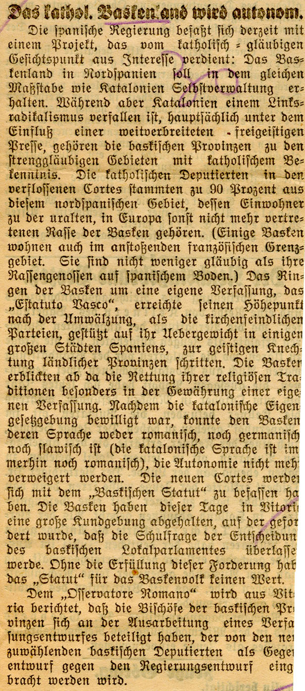 Das kathol. Basken und wird autonom.