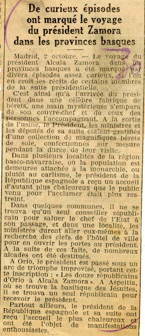 - Des curieux épisodes ont marqué le voyage du président Zamora dans les provinces basques.