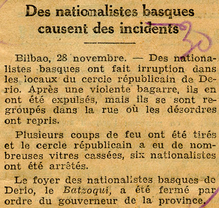 - Des nationalistes basques causent des incidents.