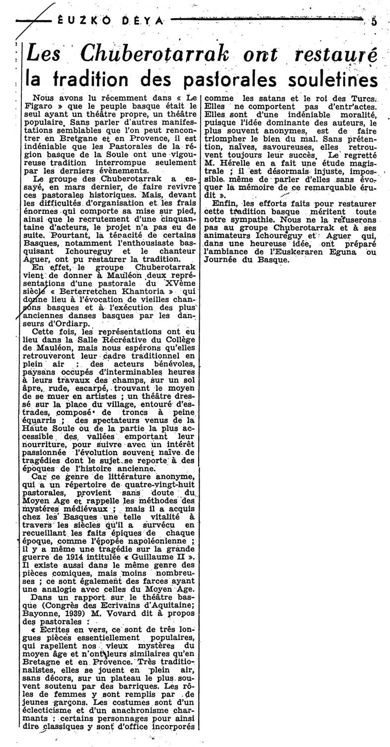 - Artículo que comenta el intento realizado en Soule por recuperar la tradición de las pastorales.
