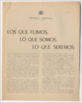 Manifiesto emitido por Félix Gordón Ordás, Presidente del Gobierno de la República en el exilio, bajo el título "Lo que fuimos, lo que somos, lo que seremos", en el que se hace balance de la política seguida por dicho Gobierno y de sus propósitos para el futuro.