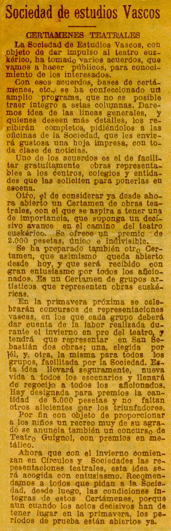 - Sociedad de Estudios Vascos. Certámenes teatrales.