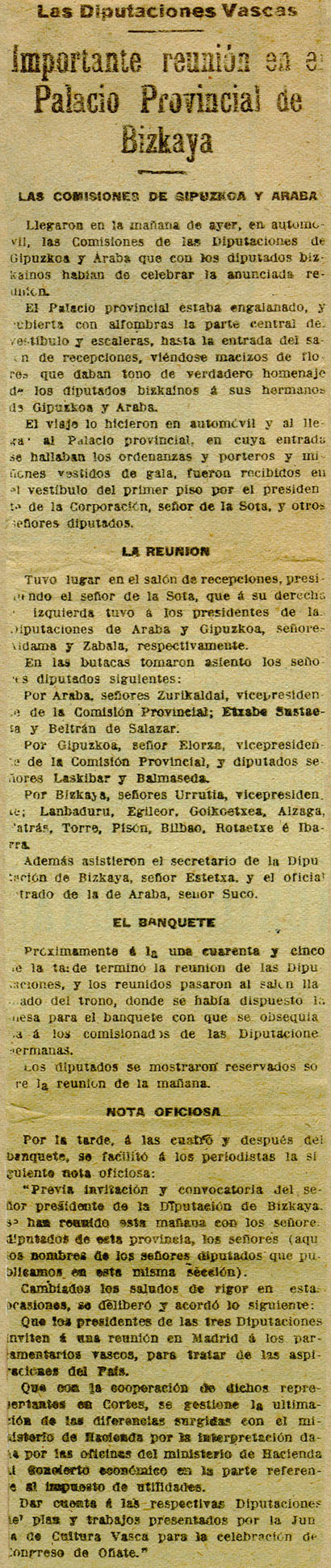 - Las Diputaciones Vascas. Importante reunión en el Palacio Provincial de Bizkaya.